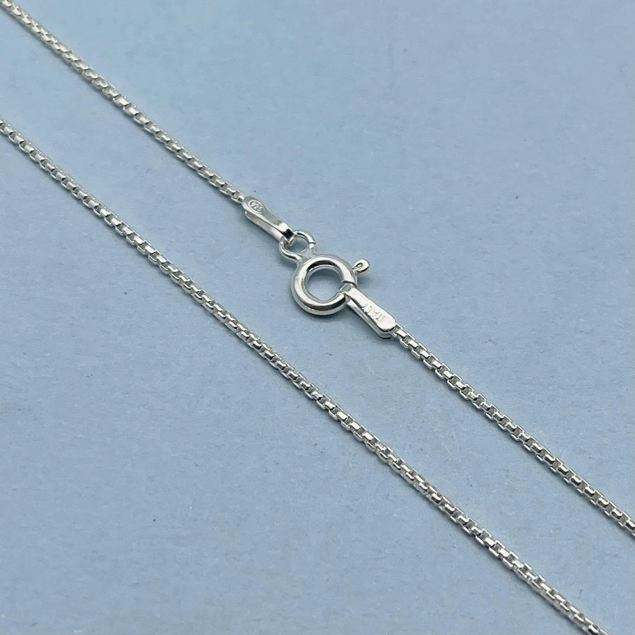 The 1mm Box Link Chain embodies minimalist elegance in the realm of handmade silver jewellery. Its sleek and contemporary design features a sequence of square links that are intricately joined to create a smooth, box-like chain. This sterling silver masterpiece is a testament to the precision and skill inherent in artisan silver pieces, shining with a refined luster that only high-quality craftsmanship can achieve.